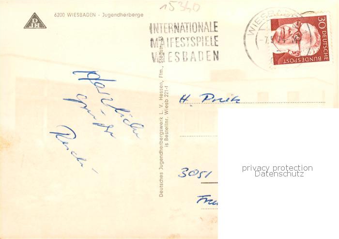 73796451 alte Postkarte Wiesbaden Jugendherberge postalisch gelaufen Erhaltung siehe scans [WerneD78] KatCode: 11110006414000