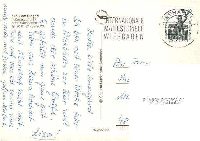 73030531 alte Postkarte Wiesbaden Klinik am Bingert Speisesaal Thermal Bewegungsbad Cafeteria postalisch gelaufen Erhaltung siehe scans [KathaD81] KatCode: 11110006414000