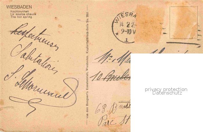 72812888 alte Postkarte Wiesbaden Kochbrunnen postalisch gelaufen Erhaltung siehe scans [AndreD76] KatCode: 11110006414000