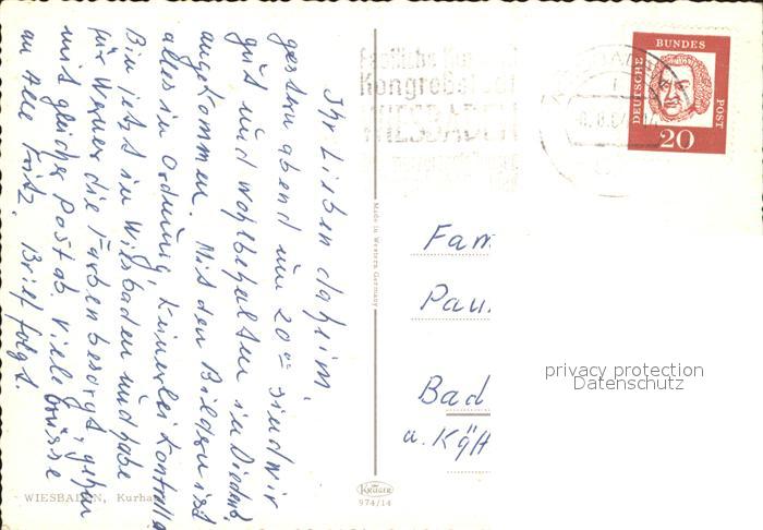 72369815 alte Postkarte Wiesbaden Kurhaus postalisch gelaufen Erhaltung siehe scans KatCode: 11110006414000