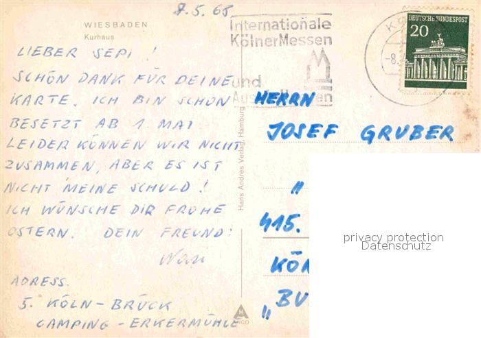 72757444 alte Postkarte Wiesbaden Kurhaus Abendstimmung postalisch gelaufen Erhaltung siehe scans [KathaD81] KatCode: 11110006414000