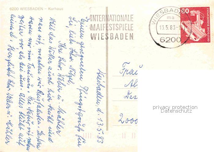72741962 alte Postkarte Wiesbaden Kurhaus bei Nacht postalisch gelaufen Erhaltung siehe scans [WerneD78] KatCode: 11110006414000