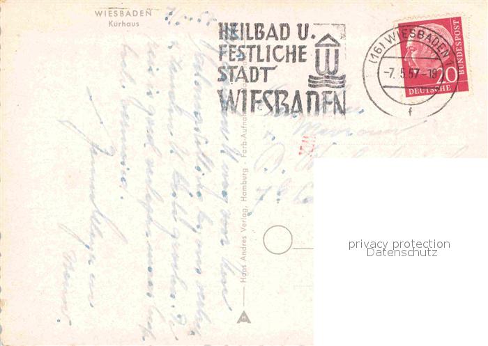 72667998 alte Postkarte Wiesbaden Kurhaus bei Nacht postalisch gelaufen Erhaltung siehe scans [WerneD78] KatCode: 11110006414000