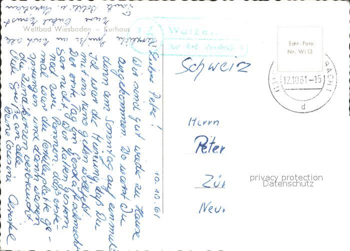 72318673 alte Postkarte Wiesbaden Kurhaus bei Nacht postalisch gelaufen Erhaltung siehe scans KatCode: 11110006414000