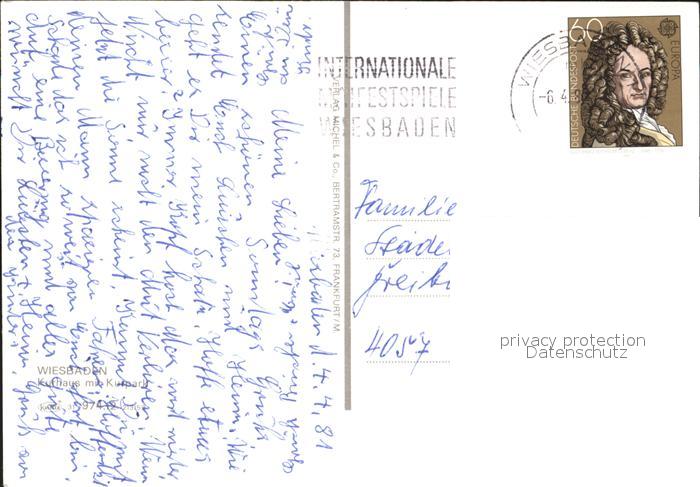 72349452 alte Postkarte Wiesbaden Kurhaus mit Park postalisch gelaufen Erhaltung siehe scans KatCode: 11110006414000