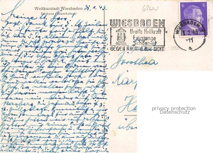 74104246 alte Postkarte WIESBADEN Kurhaus Muschelsaal postalisch gelaufen Erhaltung siehe scans [WerneD78] KatCode: 11110006414000