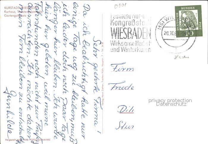 72367681 alte Postkarte Wiesbaden Kurhaus Theater Kolonnade Gartengolfplatz postalisch gelaufen Erhaltung siehe scans KatCode: 11110006414000