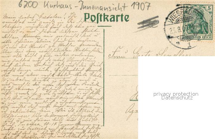 73696577 alte Postkarte Wiesbaden Kurhaus Wandelhalle Innenansicht postalisch gelaufen Erhaltung siehe scans [LiesaD40] KatCode: 11110006414000