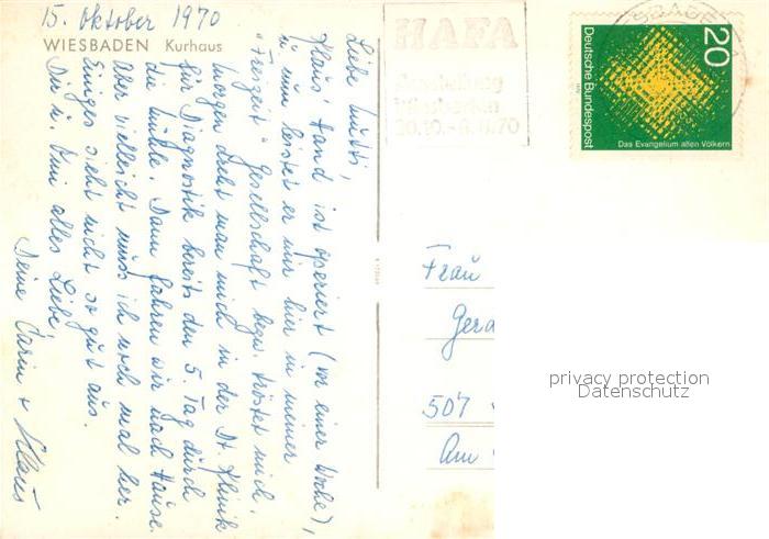 73005385 alte Postkarte Wiesbaden Kurhaus postalisch gelaufen Erhaltung siehe scans [KathaD81] KatCode: 11110006414000