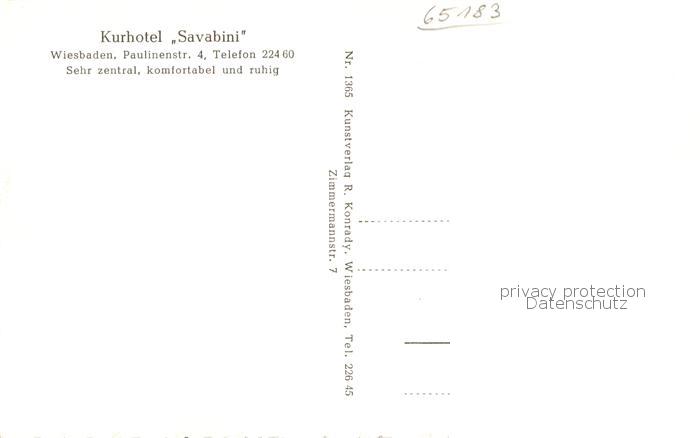 73767792 Wiesbaden Kurhotel Savabini Aussenansicht postalisch nicht gelaufen Erhaltung siehe scans [LiesaD40] KatCode: 11110006414000