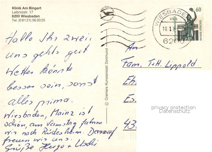 73722207 alte Postkarte Wiesbaden Kurklinik Am Bingert Bewegungsbad Speisesaal postalisch gelaufen Erhaltung siehe scans [LiesaD40] KatCode: 11110006414000