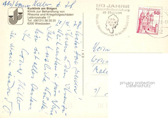 73103486 alte Postkarte Wiesbaden Kurklinik am Bingert Schwimmhalle Speisesaal postalisch gelaufen Erhaltung siehe scans [KathaD81] KatCode: 11110006414000