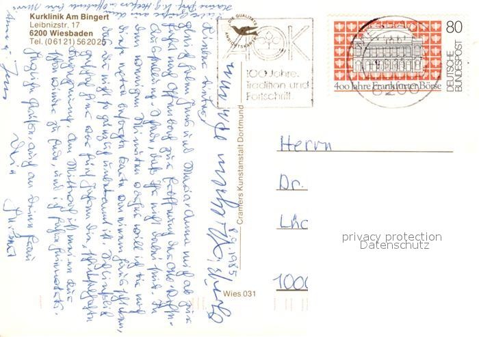 73106297 alte Postkarte Wiesbaden Kurklinik Am Bingert Speisesaal Cafeteria Bewegungsbad postalisch gelaufen Erhaltung siehe scans [KathaD81] KatCode: 11110006414000