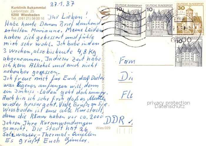 72991250 alte Postkarte Wiesbaden Kurklinik Aukammtal Aufenthalts und Speisesaal Eingangshalle Liegewiese Hessenstube postalisch gelaufen Erhaltung siehe scans [WerneD78] KatCode: 11110006414000