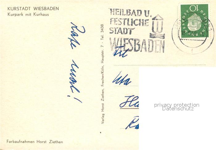73144937 alte Postkarte Wiesbaden Kurpark mit Kurhaus postalisch gelaufen Erhaltung siehe scans [FriedD77] KatCode: 11110006414000
