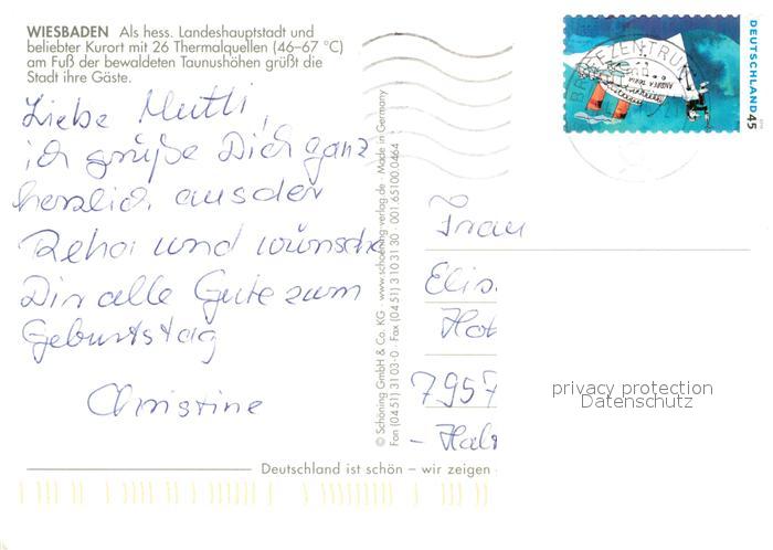 72970438 alte Postkarte Wiesbaden Landtag Moosburg Kurhaus Griechische Kapelle Landestheater postalisch gelaufen Erhaltung siehe scans [LiesaD40] KatCode: 11110006414000