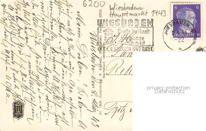 73696634 alte Postkarte Wiesbaden Marktplatz Rathaus Marktkirche postalisch gelaufen Erhaltung siehe scans [LiesaD40] KatCode: 11110006414000