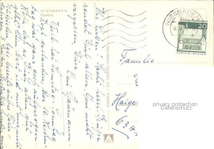 72129956 alte Postkarte Wiesbaden Opelbad postalisch gelaufen Erhaltung siehe scans KatCode: 11110006414000