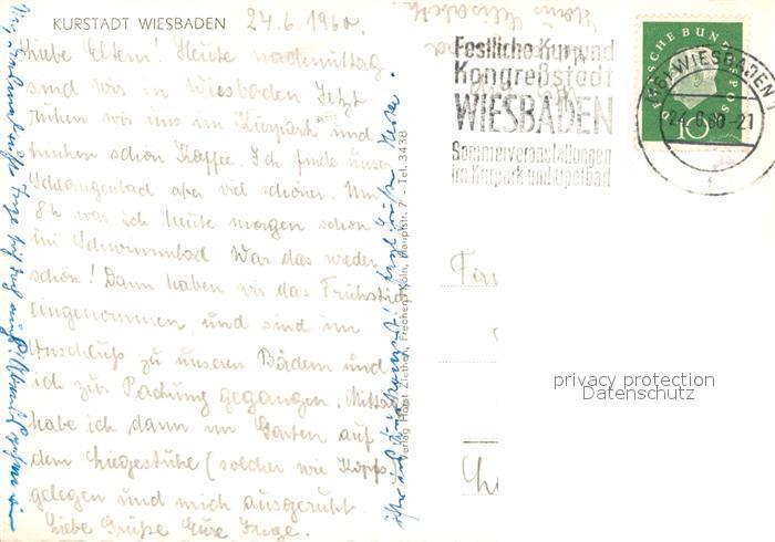 72956001 alte Postkarte Wiesbaden Ortsansichten postalisch gelaufen Erhaltung siehe scans [PaolaD17] KatCode: 11110006414000