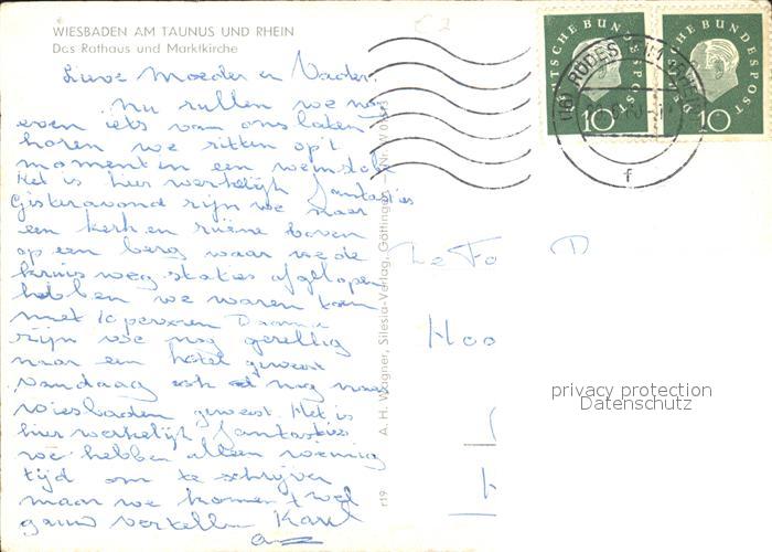 72092060 alte Postkarte Wiesbaden Rathaus Brunnen Marktkirche postalisch gelaufen Erhaltung siehe scans KatCode: 11110006414000