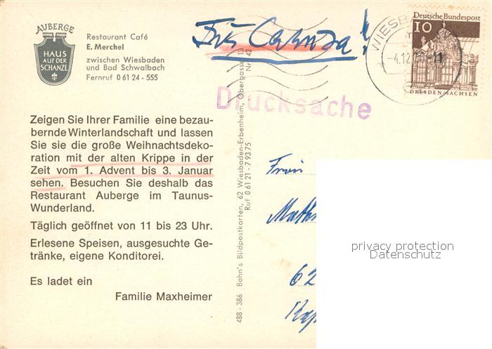 73724413 alte Postkarte Wiesbaden Restaurant Cafe Auberge Haus auf der Schanze Terrasse postalisch gelaufen Erhaltung siehe scans [WerneD78] KatCode: 11110006414000