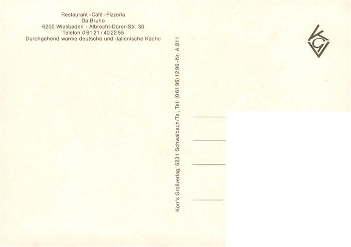 73891246 Wiesbaden Restaurant Da Bruno Cafe Pizzeria Gastraeume postalisch nicht gelaufen Erhaltung siehe scans [WerneD78] KatCode: 11110006414000