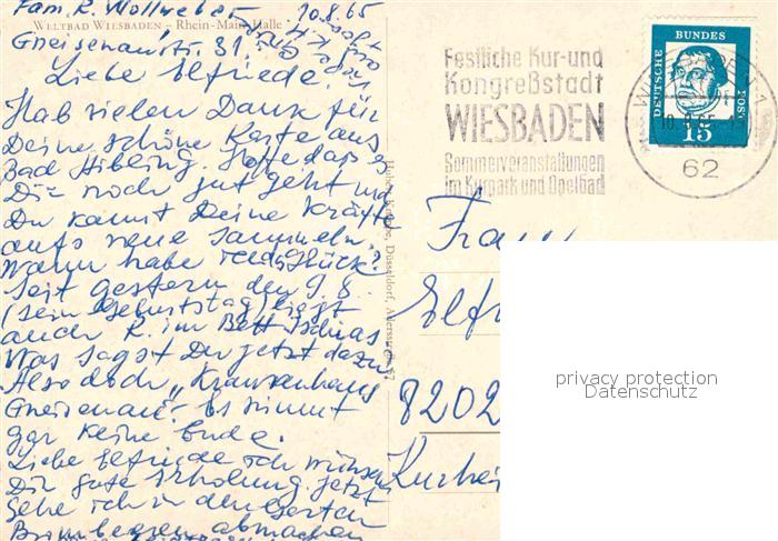 72751068 alte Postkarte Wiesbaden Rhein Main Halle postalisch gelaufen Erhaltung siehe scans [AndreD76] KatCode: 11110006414000