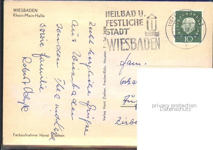 72143771 alte Postkarte Wiesbaden Rhein-Main-Halle postalisch gelaufen Erhaltung siehe scans KatCode: 11110006414000
