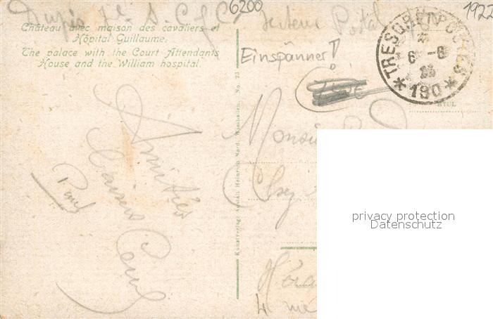 73696637 alte Postkarte Wiesbaden Schloss mit Kavalier- Haus und Wilhelm- Heilanstalt Einspanner postalisch gelaufen Erhaltung siehe scans [LiesaD40] KatCode: 11110006414000