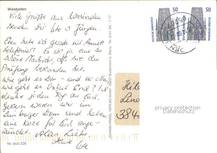 72401105 alte Postkarte Wiesbaden Stadtbilder postalisch gelaufen Erhaltung siehe scans KatCode: 11110006414000