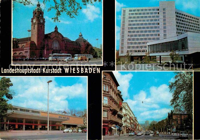 72626431 alte Postkarte Wiesbaden Teilansichten Landeshauptstadt Kurstadt Rhein Main Halle Hochhaus postalisch gelaufen Erhaltung siehe scans [FriedD77] KatCode: 11110006414000