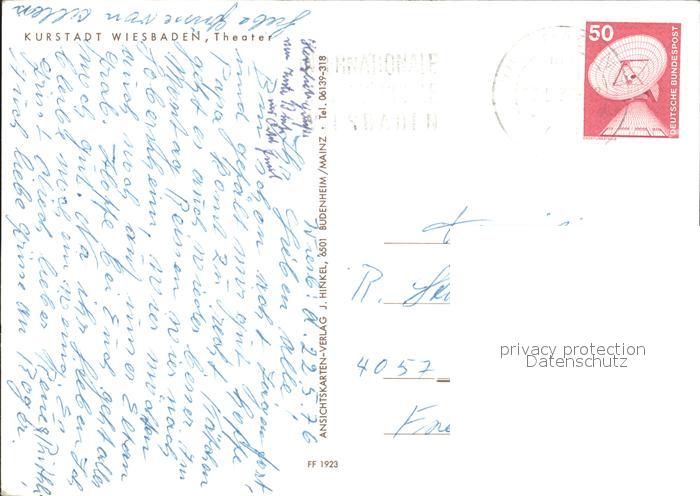 72346999 alte Postkarte Wiesbaden Theater postalisch gelaufen Erhaltung siehe scans KatCode: 11110006414000