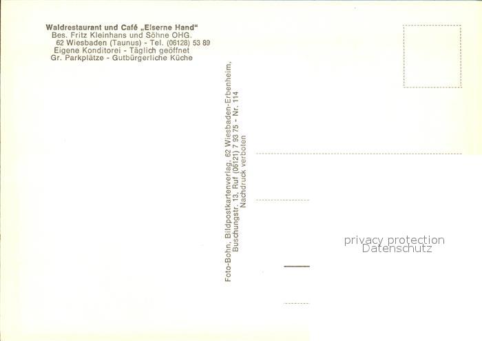 72567305 Wiesbaden Waldrestaurant und Cafe Eiserne Hand postalisch nicht gelaufen Erhaltung siehe scans [LiesaD40] KatCode: 11110006414000
