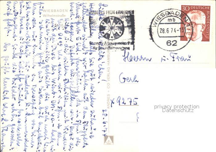 72434696 alte Postkarte Wiesbaden Wilhelmstrasse postalisch gelaufen Erhaltung siehe scans KatCode: 11110006414000