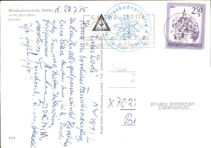 71993133 alte Postkarte Wiesbadener Huette mit Piz Buin postalisch gelaufen Erhaltung siehe scans KatCode: 11390