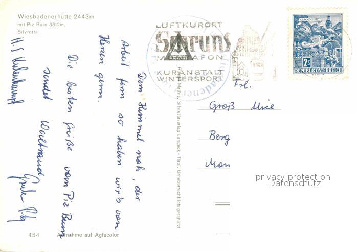 72760497 alte Postkarte Wiesbadener Huette mit Piz Buin Silvretta postalisch gelaufen Erhaltung siehe scans [LiesaD40] KatCode: 11390