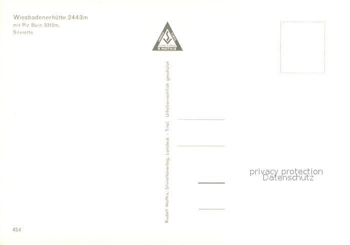 73687177 Wiesbadener Huette mit Piz Buin Silvretta postalisch nicht gelaufen Erhaltung siehe scans [FriedD77] KatCode: 11390