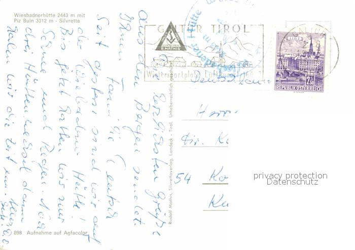72761201 alte Postkarte Wiesbadener Huette mit Piz Buin und Silvretta postalisch gelaufen Erhaltung siehe scans [WerneD78] KatCode: 11390