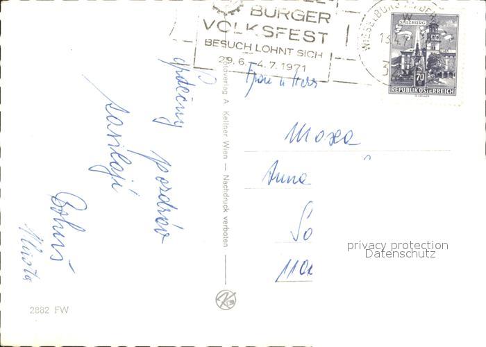 72051496 alte Postkarte Wieselburg Panorama Park Kirche Strasenpartie postalisch gelaufen Erhaltung siehe scans KatCode: 11390121032016