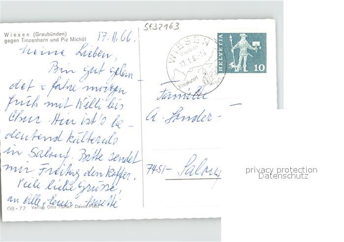 11680049 alte Postkarte Wiesen Albula Dorfmotiv mit Tinzenhorn und Piz Michel postalisch gelaufen Erhaltung siehe scans KatCode: 11470100305988