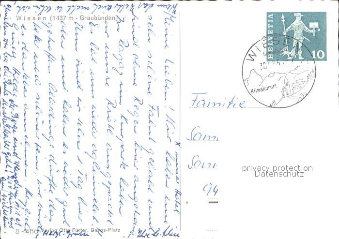 11641233 alte Postkarte Wiesen Albula Gesamtansicht postalisch gelaufen Erhaltung siehe scans KatCode: 11470100305988