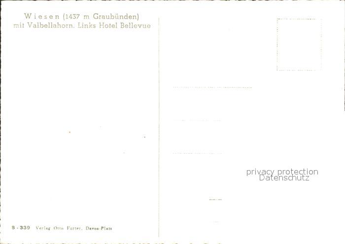 11637784 Wiesen Albula mit Valbellahorn und Hotel Bellevue postalisch nicht gelaufen Erhaltung siehe scans KatCode: 11470100305988
