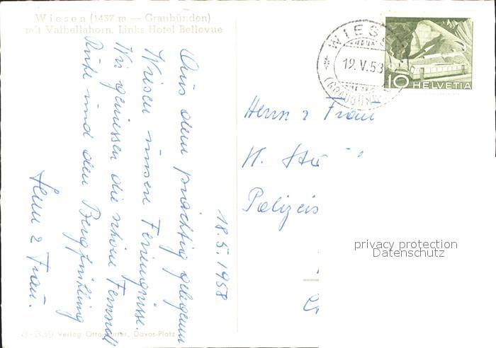 11837308 alte Postkarte Wiesen Albula Valbellahorn Hotel Bellevue postalisch gelaufen Erhaltung siehe scans KatCode: 11470100305988