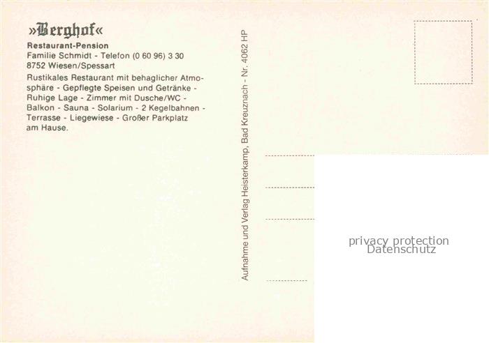 74084802 Wiesen Unterfranken Berghof Restaurant Pension postalisch nicht gelaufen Erhaltung siehe scans [WerneD78] KatCode: 11110009671162