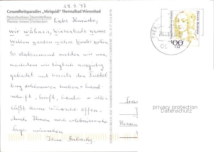 72528313 alte Postkarte Wiesenbad Gesundsheitsparadies Miriquidi Paracelsushaus Kurmittelhaus Therme Freibecken postalisch gelaufen Erhaltung siehe scans KatCode: 11110014171340