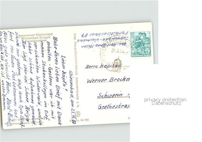 71964152 alte Postkarte Wiesenbad Paracelsushaus postalisch gelaufen Erhaltung siehe scans KatCode: 11110014171340