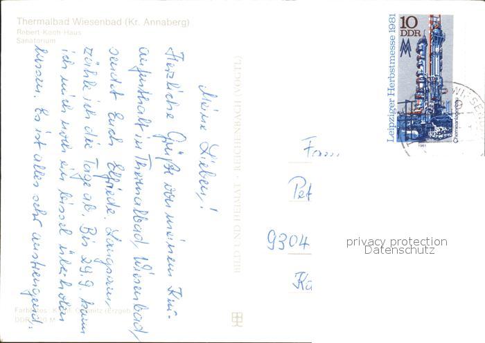 72382982 alte Postkarte Wiesenbad Robert Koch Haus Sanatorium postalisch gelaufen Erhaltung siehe scans KatCode: 11110014171340