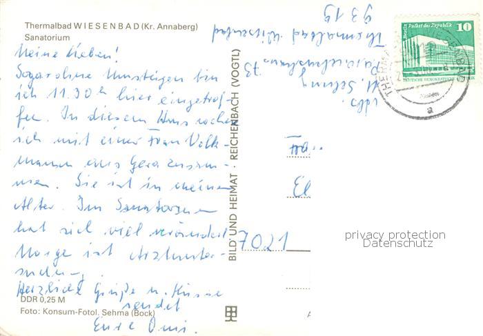 73784423 alte Postkarte Wiesenbad Sanatorium Aussenansicht Fachwerkhaus postalisch gelaufen Erhaltung siehe scans [LiesaD40] KatCode: 11110014171340