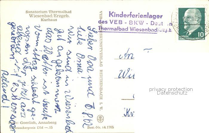 72053233 alte Postkarte Wiesenbad Sanatorium Thermalbad Kurhaus postalisch gelaufen Erhaltung siehe scans KatCode: 11110014171340