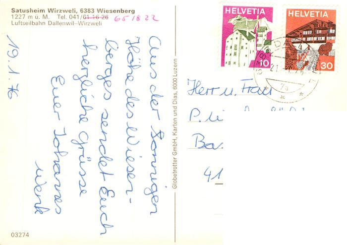 13901476 alte Postkarte Wiesenberg NW Satusheim Wirzweli Alpen postalisch gelaufen Erhaltung siehe scans [FriedD77] KatCode: 11470140435250
